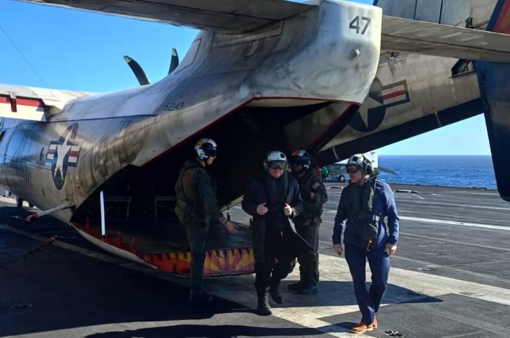 Un avión de guerra con bandera norteamericana transportó al Presidente desde Aeroparque hacia el buque nuclear USS Nimitz. Es parte de la flota que realiza ejercicios navales en el sur del país, autorizada por el Gobierno.