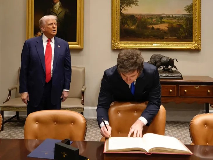 Durante el almuerzo oficial, Trump estuvo acompañado por el vicepresidente J.D. Vance, el secretario de Estado Marco Rubio y el secretario del Tesoro Scott Bessent. Del lado argentino participaron Luis Caputo, Patricia Bullrich, Gerardo Werthein y Santiago Bausili.